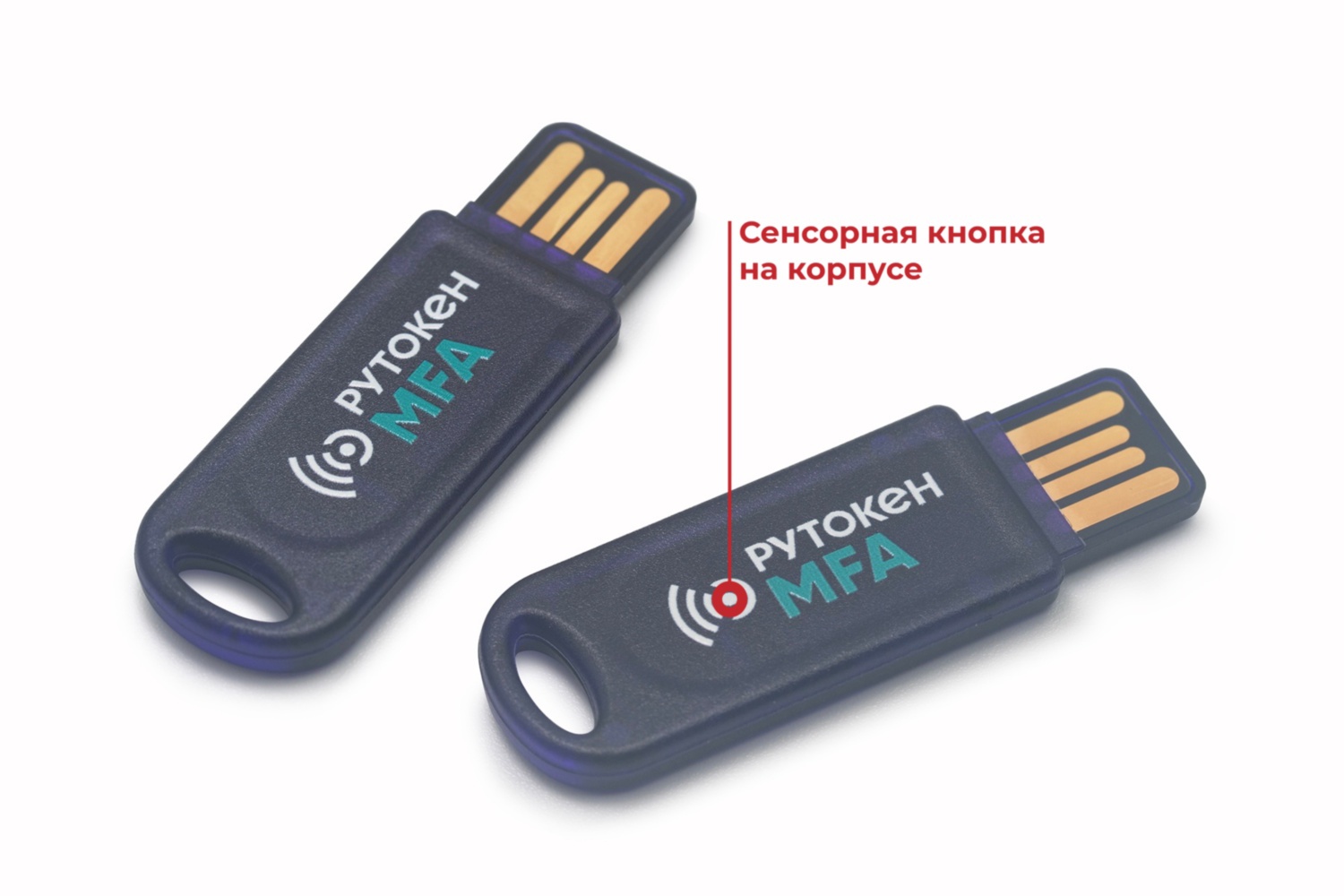 Устройства линейки Рутокен MFA оснащены сенсорной кнопкой и световой индикацией. Сенсорная кнопка на корпусе используется для подтверждения физического присутствия пользователя.