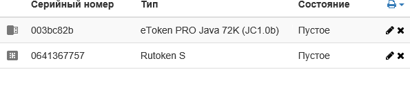 • USB-токены Rutoken S c серийными номерами: 0755398982, 0756309531, с указанным комментарием: Московский офис и тегами: VPN, IT;