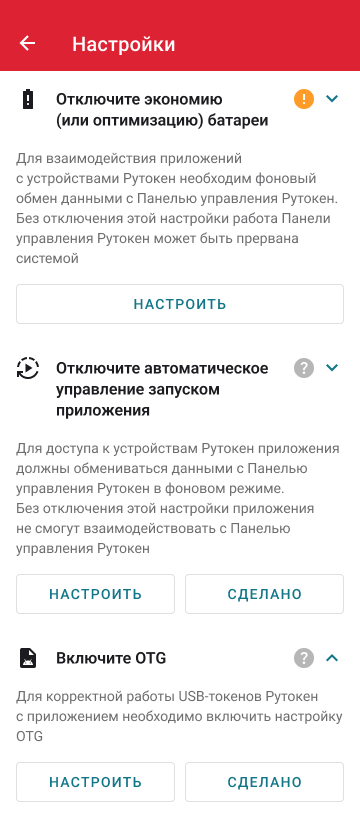 Для корректной работы приложения необходимо настроить ряд разрешений и отключить экономию батареи. Настройка приложения описана в следующем разделе.