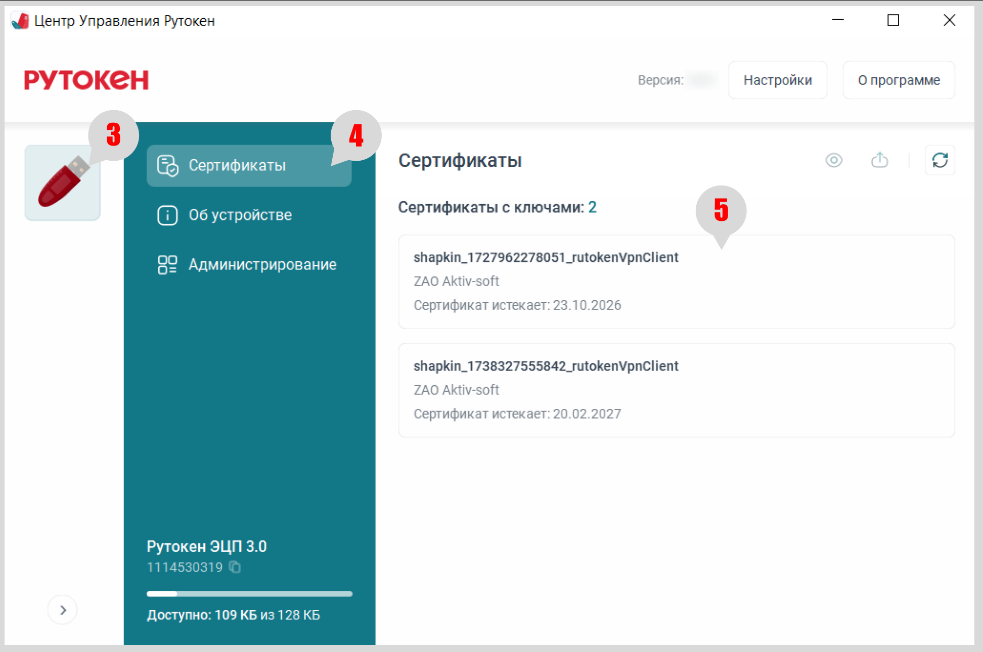 3. Слева на боковой панели выберите Рутокен.