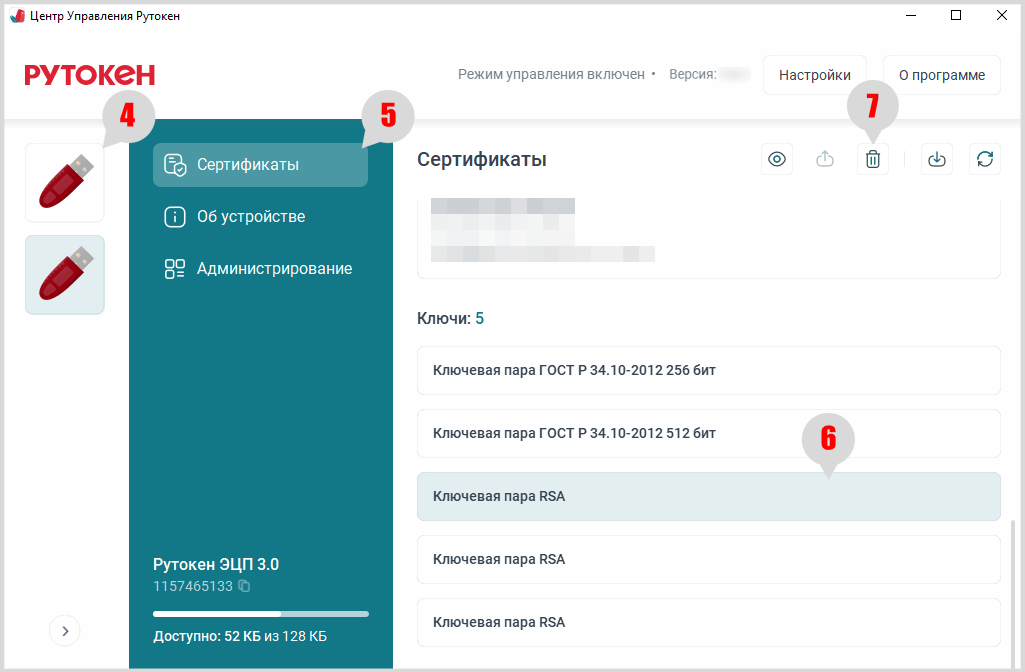 - Нажмите левой кнопкой мыши на карточку ключевой пары.