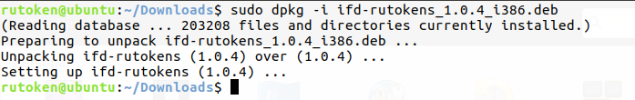 Пример команды для 32-разрядной версии Ubuntu:$ sudo dpkg -i ifd-rutokens_1.0.4_i386.deb